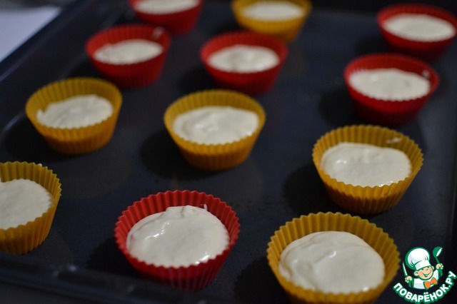 Ложкой выкладываем тесто в формочки (у меня силиконовые). Ставим кексы на противень и убираем в духовку, разогретую до 180 градусов. Выпекаться они будут примерно 10-16 минут. Капкейки должны быть белого цвета, если они начнут “золотиться”, значит уже подсушиваются.