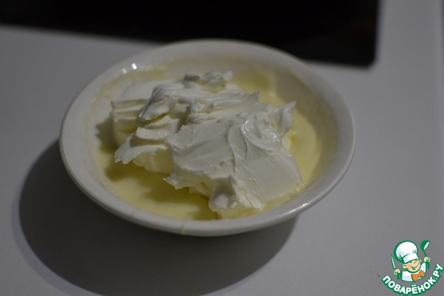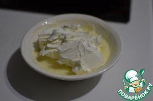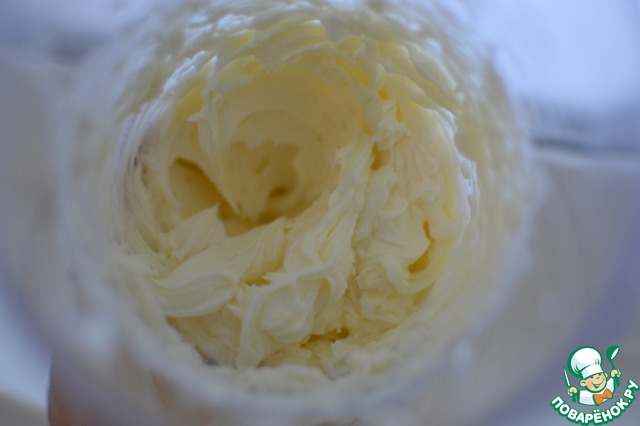 Сначала взбиваем миксером масло и сахарную пудру, потом добавляем творожный сыр, взбиваем.