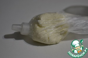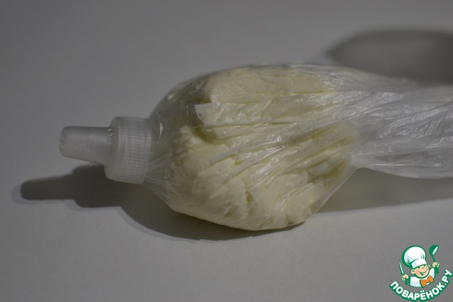 Перекладываем крем в кондитерский мешок (у меня не было, использовала мешок и насадки).