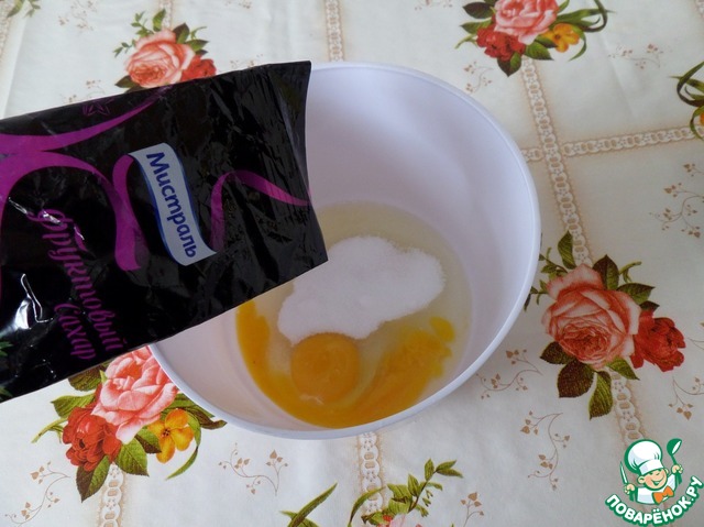 В чашку разбиваем яйцо. Добавляем "Фруктовый сахар" ТМ "Мистраль". Взбиваем с помощью миксера в пышную массу. Добавляем растопленное сливочное масло и лимонную цедру. Взбиваем миксером.