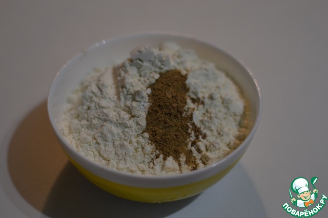 В отдельной миске смешать муку, разрыхлитель и специи.