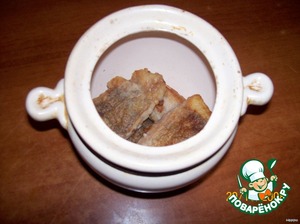 В горшочки (у меня их 5) уложить по 3 кусочка рыбы