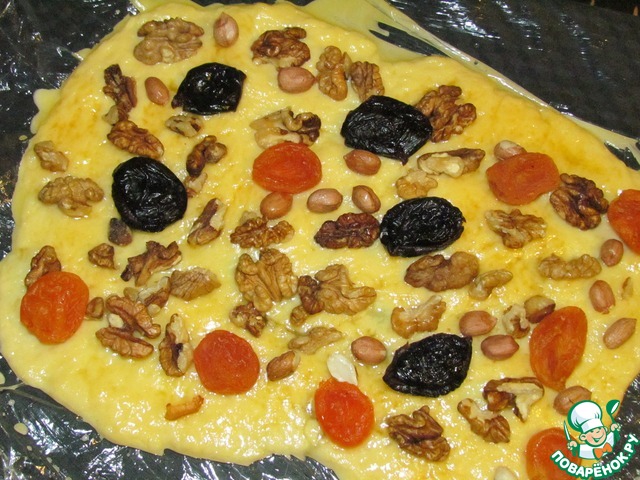 • При приготовлении данного рецепта ингредиенты необходимо подготовить: орехи можно обжарить для улучшения вкуса, а курагу и чернослив ошпарить кипятком для размягчения.