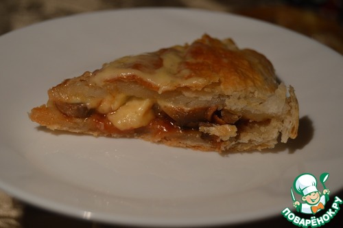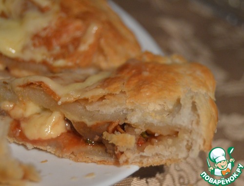 Хочу представить слоеный закрытый пирог с грибами и сыром. По вкусу получается такая вот пицца-хачапури.