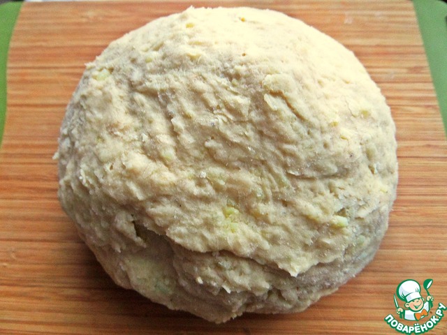 • Потом вымесить руками тесто в плотный шар. Добавить ложку муки, если требуется, чтобы не прилипало к рукам.