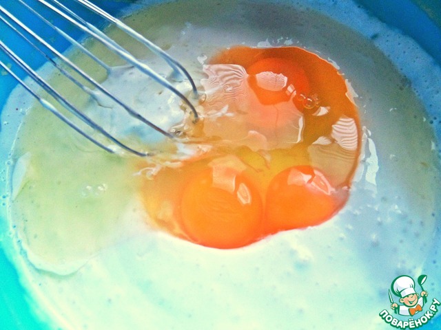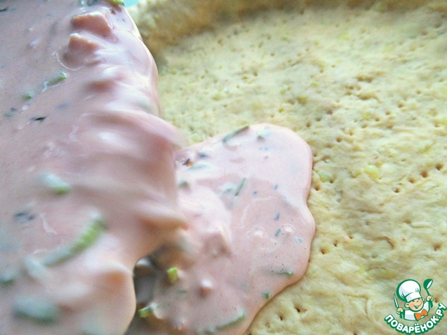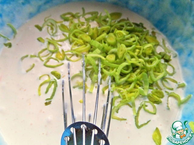 • Для заливки-начинки смешать сметану, кефир и сливки. Можно сметану и сливки пополам или кефир и сливки пополам.