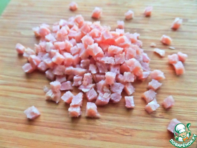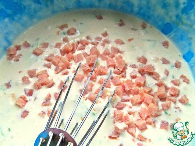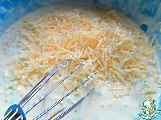 • Из остального сыра отделила примерно ложку для верха, остальное-в начинку.