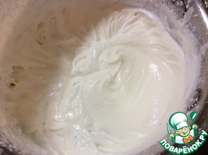 400 мл сливок взбить, продолжая взбивать по частям влить бананово-шоколадную смесь.