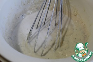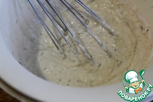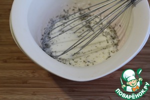Яйцо, соль, кефир, прованские травы и черный перец перемешать тщательно.