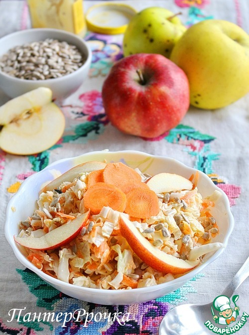 Сверху посыпать обжаренными на сухой сковороде до золотистого цвета семечками.