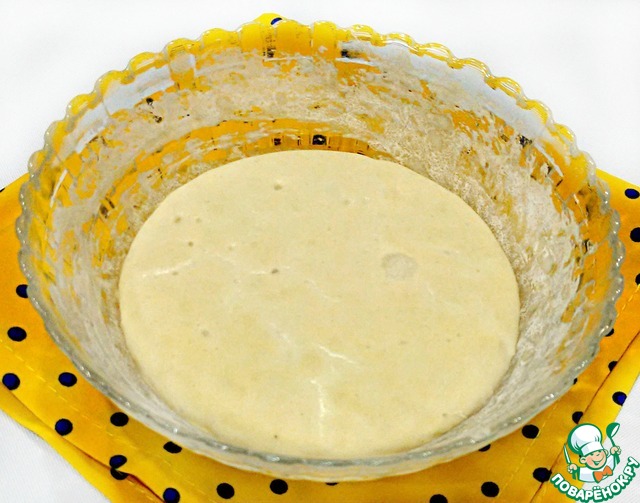 Тесто убрать в теплое место на 1 час до увеличения в объеме в два раза.