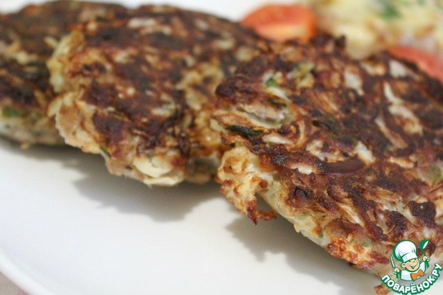 На разогретой с растительном маслом сковороде обжарила под крышкой на маленьком огне по 2-3 минуты с каждой стороны 3 котлетки ( или оладьи - не знаю как и назвать лучше)