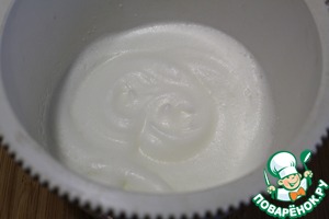 Белки взбить до пиков, добавляя частями сахар взбивать до пиков. -