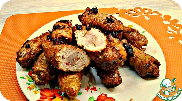 Мясные рулетики с салом и чесноком