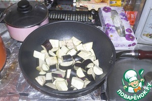 Баклажаны временно убираем со сковородки, следя за тем, чтобы они не утащили с собой лишнее масло.
