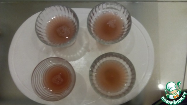 Разлить по стаканам, желательно пошире. Заполнить на половину. Поставить в холодильник на 2 часа