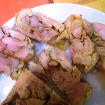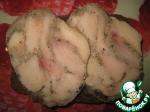 Вид в разрезе. Мясо получается нежное и совсем не сухое. Мне нравится в сочетании с горчицей и черным хлебом.