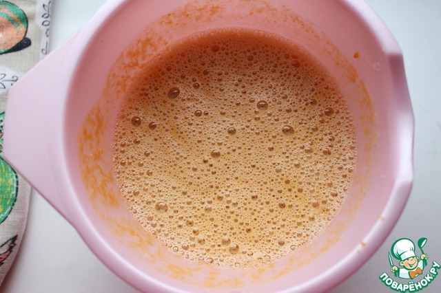 Добавить тыквенное пюре, жидкий мед и растопленный шоколад (шоколад можно растопить на маленькой мощности в микроволновке или на водяной бане), корицу и имбирь, взбить.