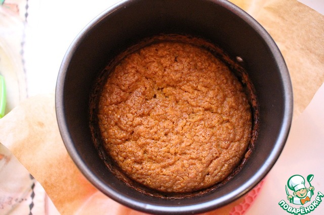 Перелить в форму (у меня разъемная форма диаметром 12 см, проложенная пергаментом) и поставить в предварительно разогретую до 180 градусов духовке на 40-45 минут. Во время выпечки тесто поднимется, но после остывания опадет, это нормально.