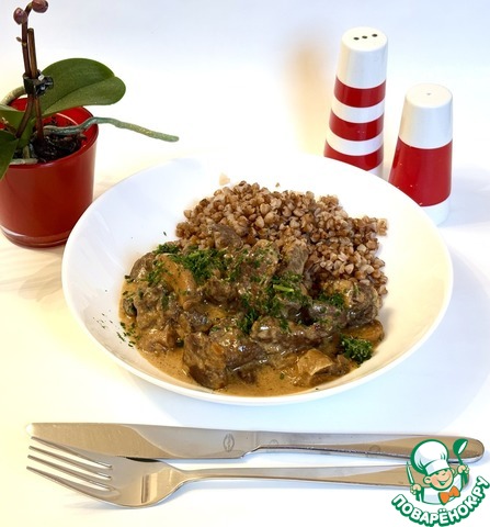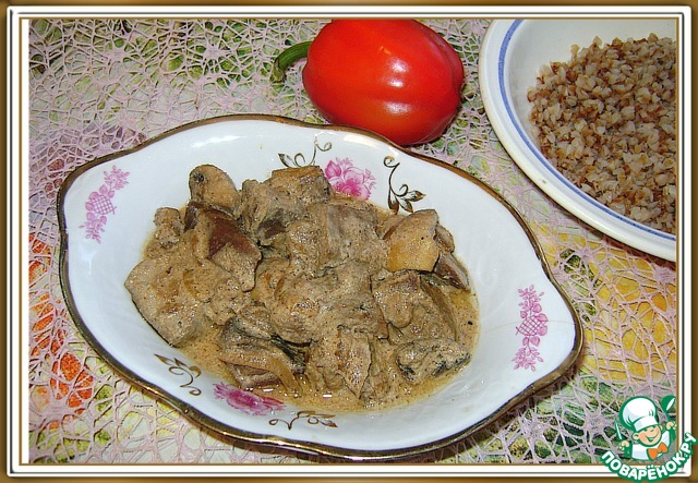 Очень вкусная мягчайшая печень в нежном- почти бархатном соусе. Идеально подходит к любому гарниру.