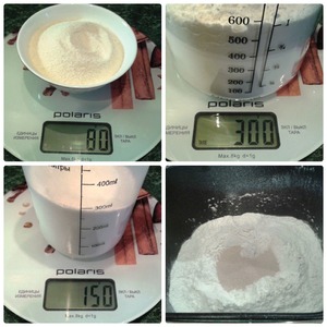 В моем случае сначала жидкие, затем сыпучие. Сверху муки у меня дрожжи.