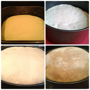 Через 1,5 часа достаем ведерко из ХП. Тесто хорошо поднялось и очень приятное на ощупь. Перекладываем тесто в смазанную маслом форму для выпечки. Я использовала формочку для выпекания куличей.