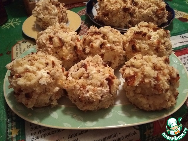 Поздравляю всех со Старым Новым годом! Старый Новый год - удивительный праздник, дающий нам возможность еще раз под елочкой загадать свое заветное желание, порадовать родных и близких подарками и выпить шампанского, весело искрящегося от множества новогодних огоньков. Это сказочный день, когда хочется верить в чудо и чувствовать себя детьми. Пусть в нашей жизни будет побольше волшебства, и тогда мир станет добрее, и все наши желания обязательно исполнятся! Хочу предложить на праздничный стол пирожное. Очень светлые воспоминания связаны с "Белочкой". Мы служили в Тбилиси, я работала в проектном институте, и после Нового года начальник отдела принесла на праздничный стол это пирожное. Оно и в самом деле такое пушистое, как белочка. Коллектив очень даже положительно оценил вкусовые качества, и на все торжества в институте мы хором просили испечь для нас только и только "Белочку"! И вот уже много лет я пеку на праздники "Белочку".