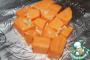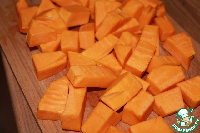 Тыкву очищаем и нарезаем небольшими кусочками.