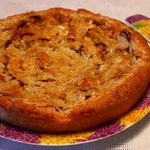 [+2]Пирог поднялся в духовке, но при остывании осел и, под тяжестью масла в карамели, стал тяжёлым и даже клёклым.
