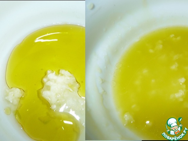 Для соуса смешать оливковое масло с соком лайма, выдавить чеснок, все хорошо перемешать.