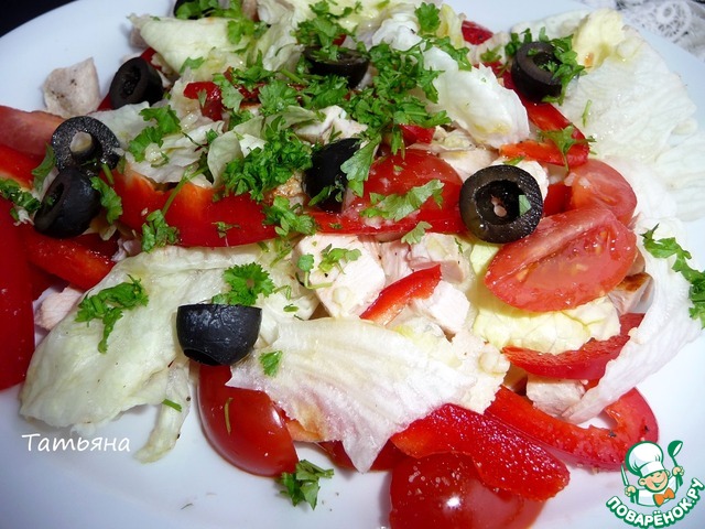Ингредиенты для «Салат с индейкой и помидорами»: