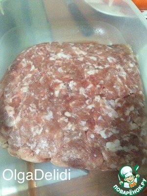 Готовите тесто: берёте 500 грамм муки, добавляет соль, воду и замешиваете. Оставляете на время отдохнуть. За это время готовите фарш.