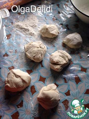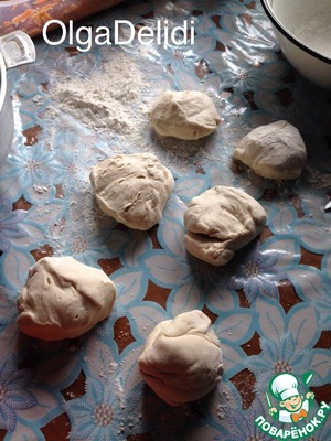 Тесто я поделила на 6 кусков, так как у меня 3 круга в мантоварке.