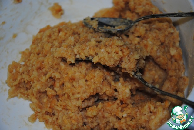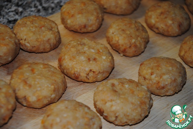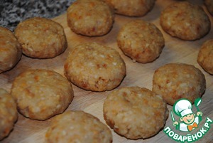 Катаем шарики по размеру чуть больше грецкого ореха. Шарики чуть придавливаем ладонью.
