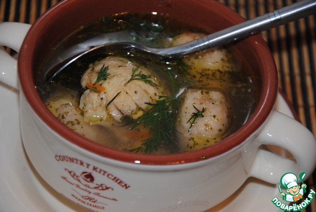 Рецепт «Куриный бульон с клёцками из сушек»: