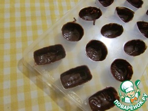 Аккуратно кисточкой нанести слой шоколада по дну и стенкам формы для конфет. Отправить в холодильник на 10 минут. Затем нанести второй слой шоколада. Вновь, поставить в холодильник до полного замерзания.