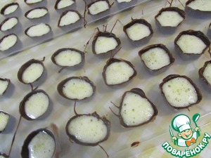 Мусс разложить в подготовленные шоколадные заготовки. На 40 минут отправить в холодильник. Затем покрыть оставшимся шоколадом (если шоколад за это время затвердел, растопить его повторно в микроволновке или на водяной бане). Конфеты поставить в холодильник.