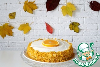 11. Первый корж смазать сливочным сыром (сладким) 500г и 300-400 г на верхний корж.