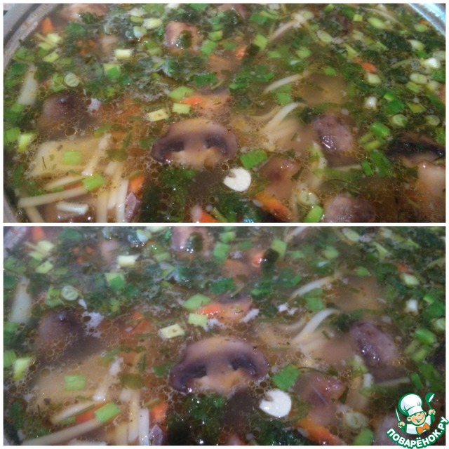 Дать супу настояться минут 15- 20. Лапша дойдёт до полной готовности, а суп станет более ароматным.