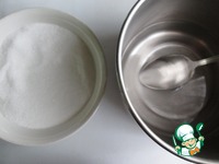 Наливаем воду в сотейник и ставим на плиту. Из общего количества сахара берём 2 ст. л., добавляем в воду и перемешиваем. Когда вода закипит, добавляем 2 ст. л. яблочного уксуса. Он придаст тыкве кислинку на начальном этапе. Если решите его не добавлять, то можно добавить немного лимонного сока, по вкусу. |