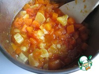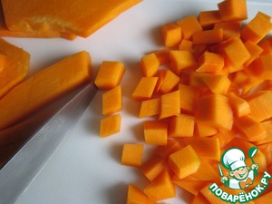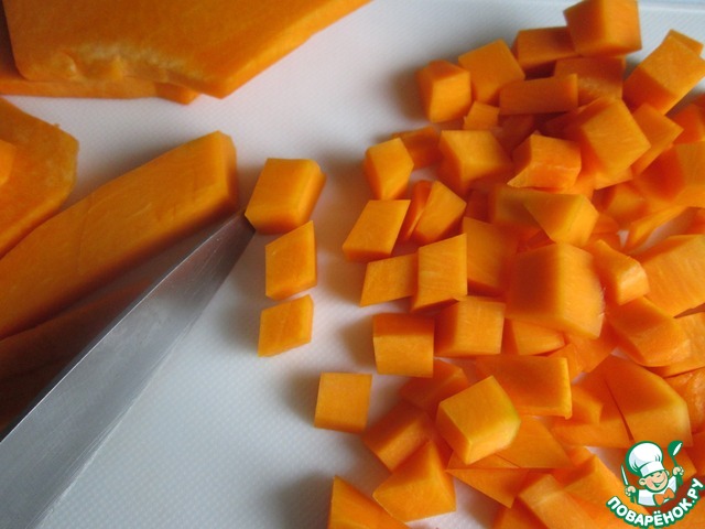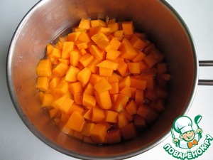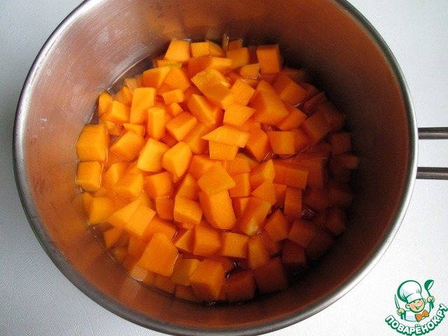 Теперь выкладываем нарезанную тыкву, и доводим до кипения.