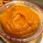 Прошло 40 минут. Тыква и курага стали мягкими, начали карамелизироваться. Мешочек с пряностями вынимаем. Даём остыть и измельчаем блендером до однородной консистенции.