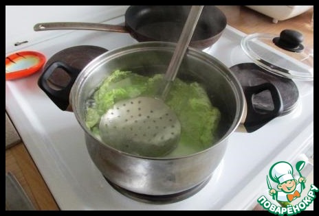 Если кочан большой, то хватит 10 крупных листьев, по числу мини голубцов; если кочан мелкий, как у меня, то листьев нужно в два раза больше. -