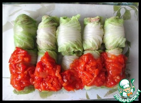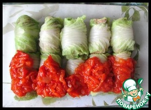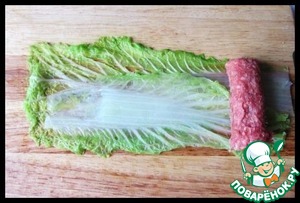 Свернуть рулетом, концы капустного листа по бокам заправить вниз.