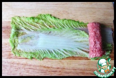 Упрощенный вариант мини голубцов. Вместо капусты используется китайский салат, вместо начинки - говяжьи колбаски или сосиски. Быстро, просто и вкусно. И, скорее, это не рецепт для точного исполнения, это идея для самостоятельного творчества. Приглашаю ознакомиться!