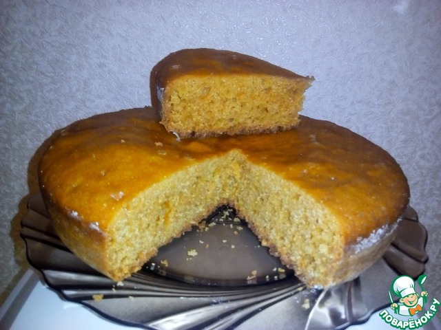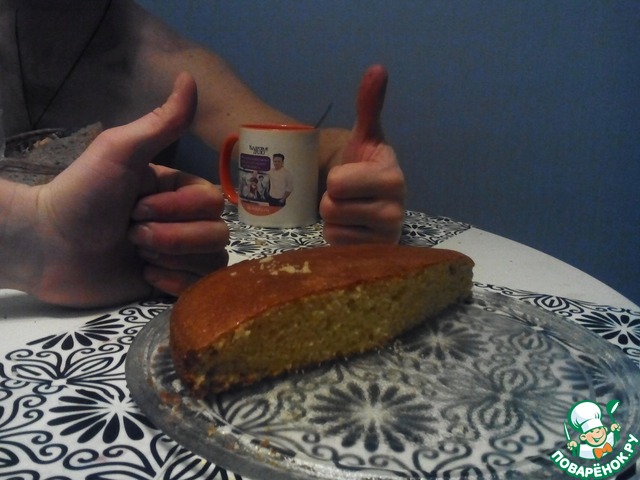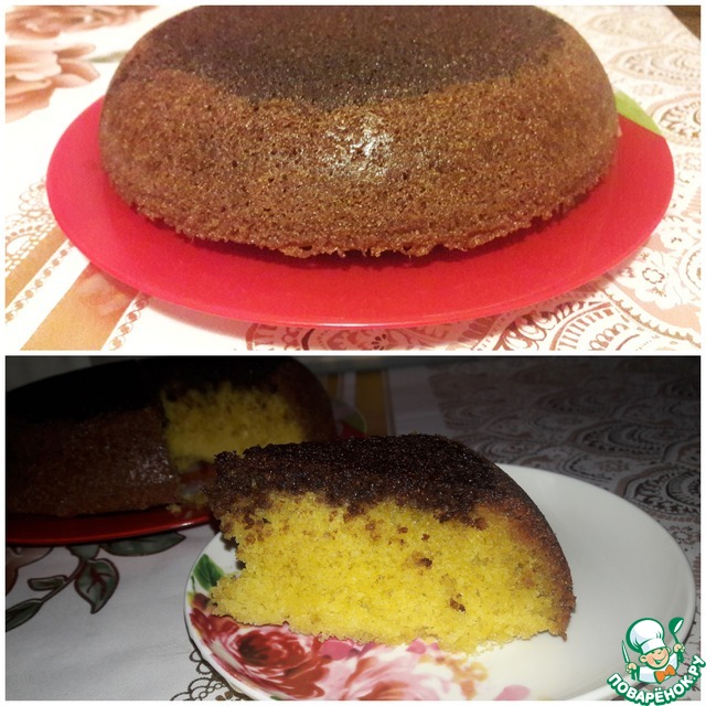 Вынимаем манник из формы и переворачиваем. Вот какой он получился румяный.