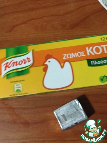 Затем добавляем кубик бульонный, у меня был куриный. Кому как нравится, кто не использует, может не класть.