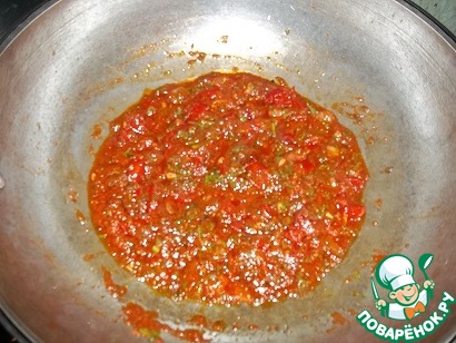 - Томаты в собственном соку (пюре) — 1/2 стак.