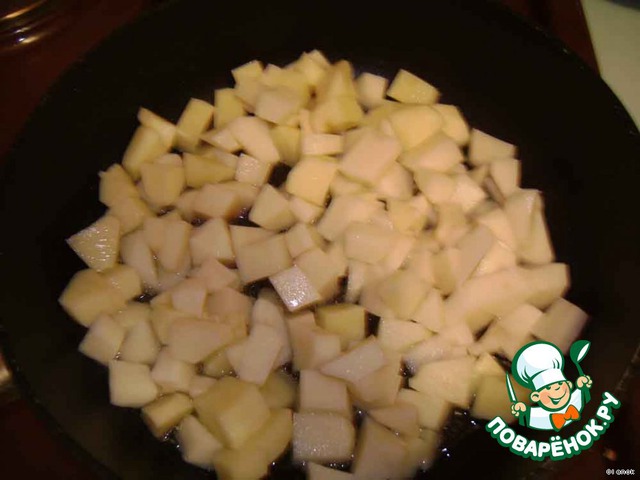 Картофель очистить, нарезать мелкими кубиками и обжарить в растительном масле. По желанию приправить пряной смесью для блюд из картофеля.
