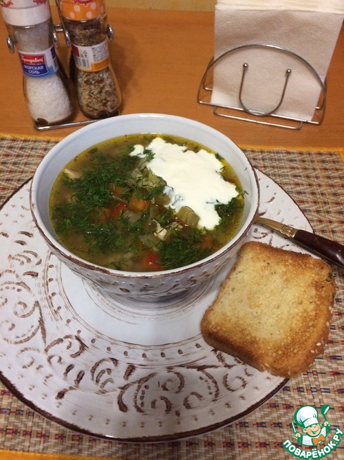 Вкусный и достаточно диетический суп, который можно варить с любой из ваших любимых круп - рисом, гречневой, пшеничной - на ваше усмотрение! А что самое главное - готовится очень быстро!